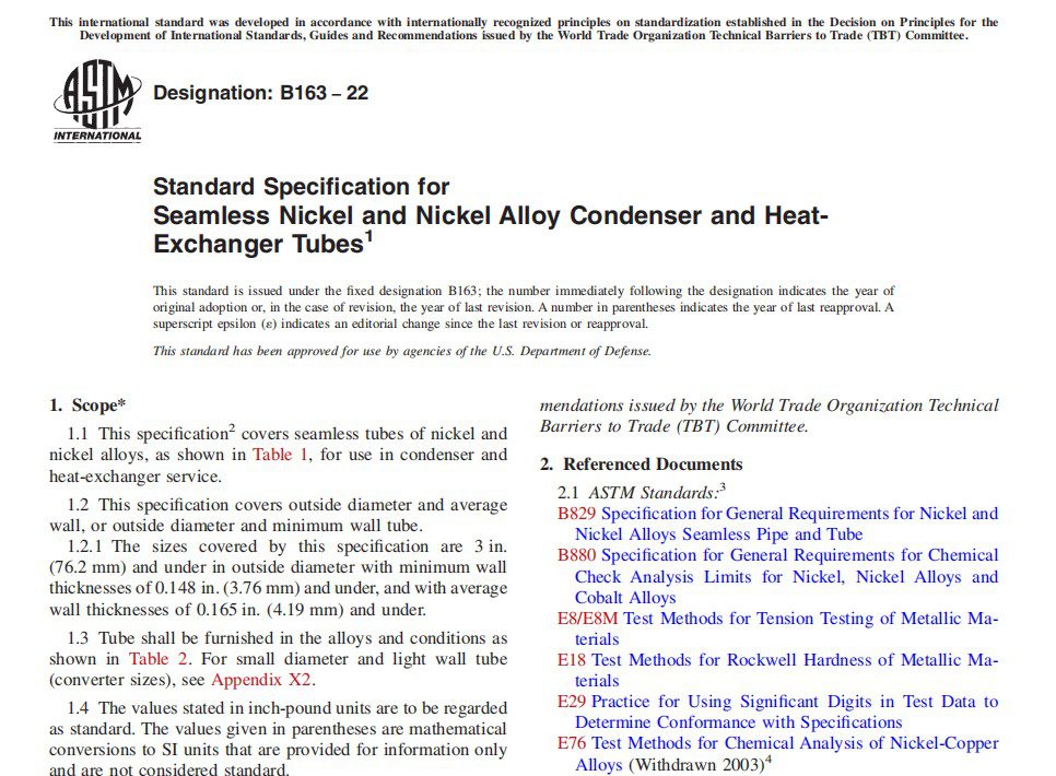 TOKOTUBE ASTM B163-22 Standard Specification for Seamless Nickel and Nickel Alloy