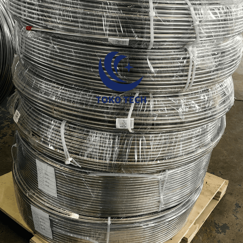 TOKO TECH ensures the highest quality through stringent process control. The manufacturing includes a solution annealing heat treatment at 925-980°C (1700-1800°F) to achieve optimal microstructure and corrosion performance, followed by 100% non-destructive testing (Eddy Current or Ultrasonic). Given its application in corrosive environments, coils are typically protected with VCI (Vapor Corrosion Inhibitor) packaging or vacuum sealing to prevent surface contamination during transit and storage.